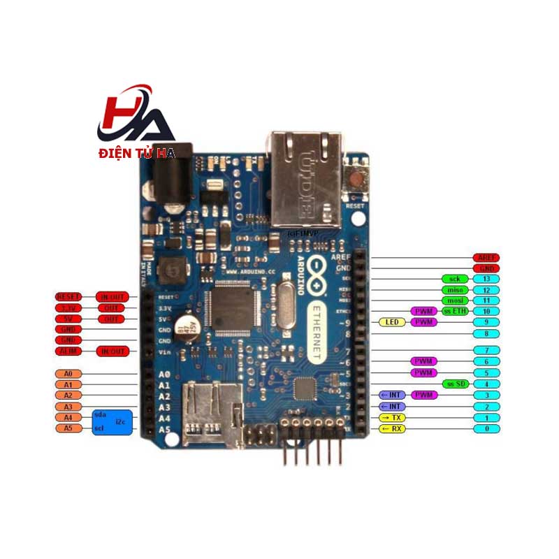 Arduino Ethernet Shield W5100 sử dụng chip W5100 từ hãng Wiznet cho tốc độ và khả năng kết nối ổn định nhất, bộ thư viện đi kèm và phần cứng với cách kết nối dễ dàng khiến cho việc kết vối Arduino với Ethernet đơn giản hơn bao giờ hết, thích hợp để làm các ứng dụng điều khiển thiết bị qua mạng, IoT,…