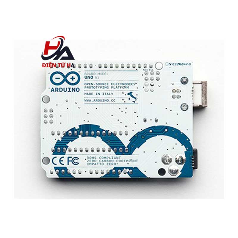 Arduino Uno R3 là loại phổ biến và dễ sử dụng nhất trong các dòng Arduino hiện nay cũng như tương thích với nhiều loại Arduino Shield nhất, phiên bản Uno là Revision 3 (R3) như hình mô tả dưới đây, các bạn nên lưu ý điểm này rất quan trọng vì ở một số nơi bán loại không phải R3 mà là các phiên bản cũ hoặc sử dụng IC nạp CH340 giá rẻ với cấu trúc phần cứng dễ lỗi, dễ cháy hơn so với phiên bản R3.