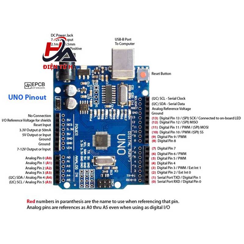 - Số chân Digital I/O: 14 (trong đó 6 chân có khả năng xuất xung PWM).